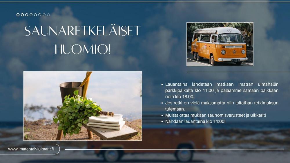 Tervetuloa mukaan saunaretkelle Radalla Resortiin, Iittiin. Ilmoittuminen alkaa maanantaina 16.3.2026 klo 16:00 saunan ilmoitustaululla. Mukaan mahtuu ensimmäiset 57 osallistujaa. Kuvista löydät…