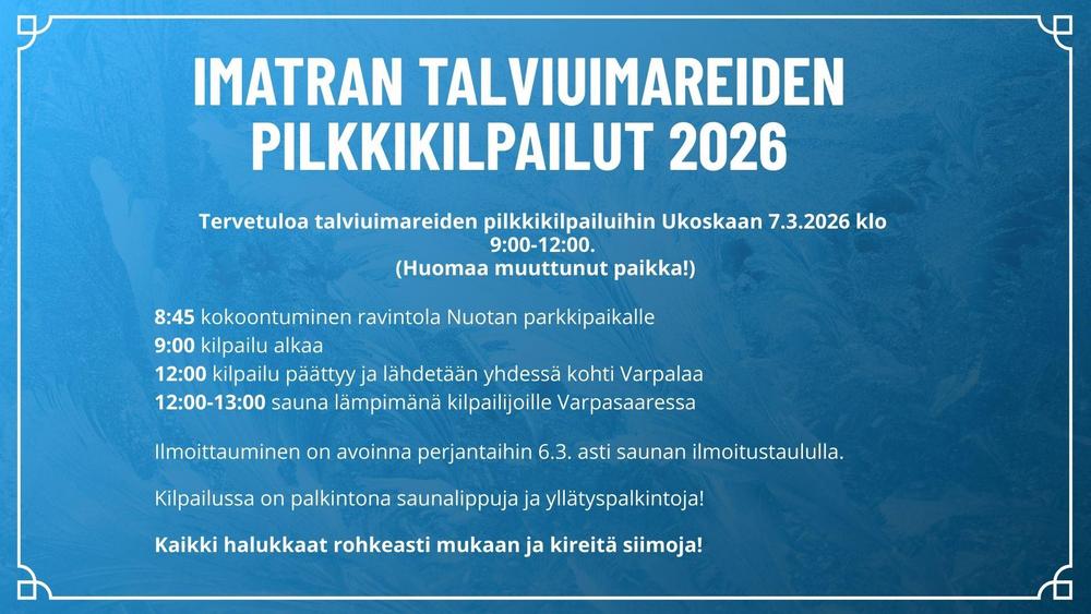 Imatran Talviuimarit ry | Varpasaarenpolku 10 (ent. Kotipolku 4) | 55120 Imatra | puhelin 040 5915 414